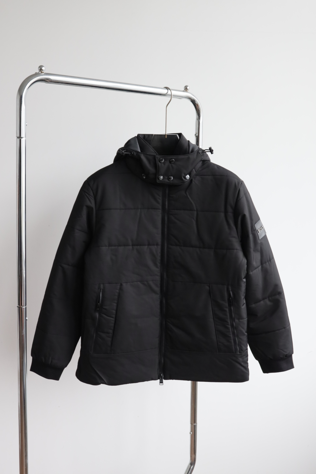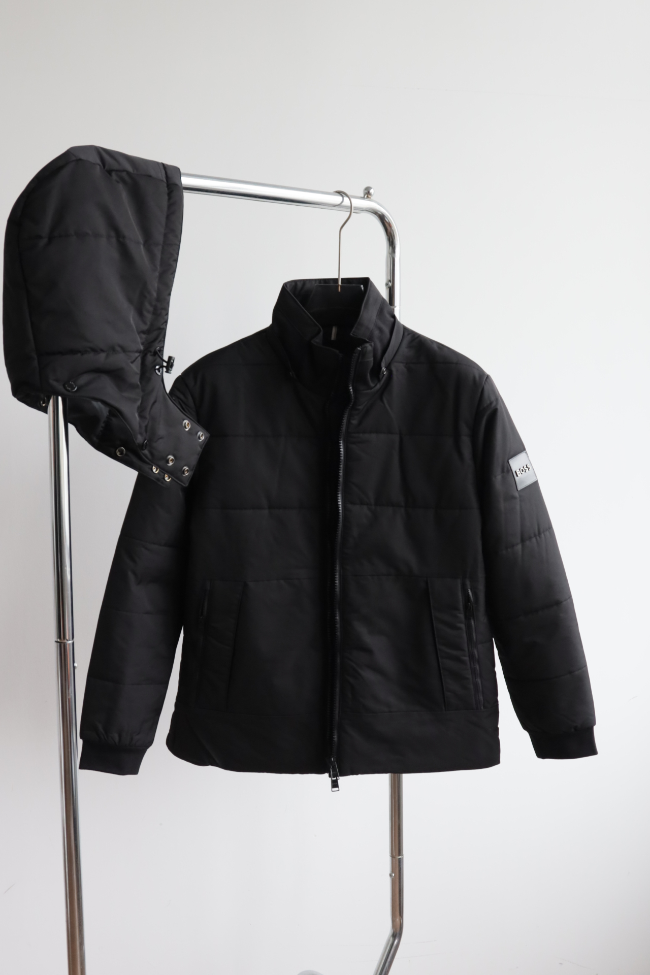 防风、防泼、保暖的性质!可拆卸帽子,个人感觉不要帽子当立领夹克穿更帅~!