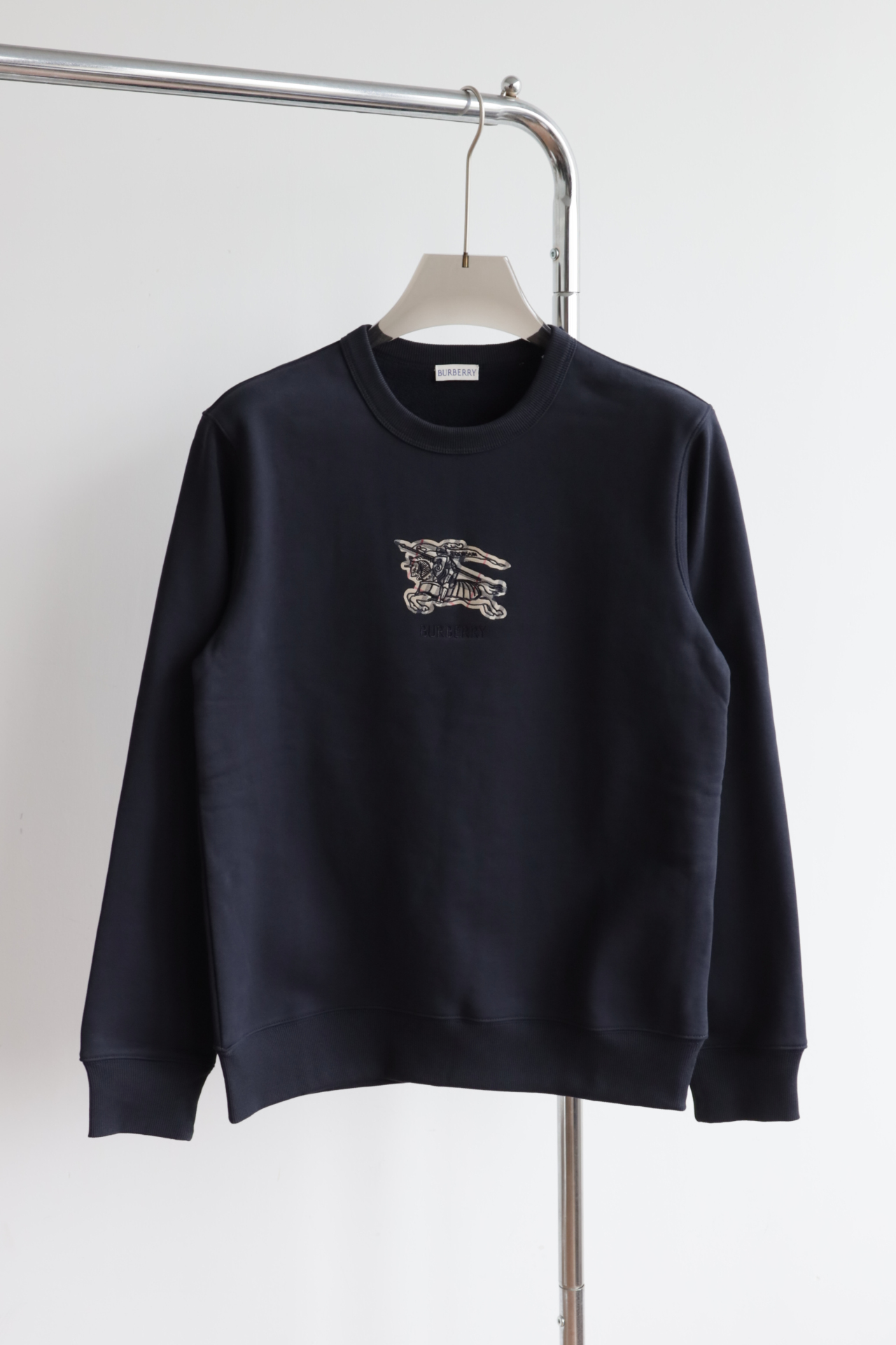 以今年火爆的马术骑士标作为设计,饱满圆润的印花刺绣工艺,上身整体层次感非常强烈