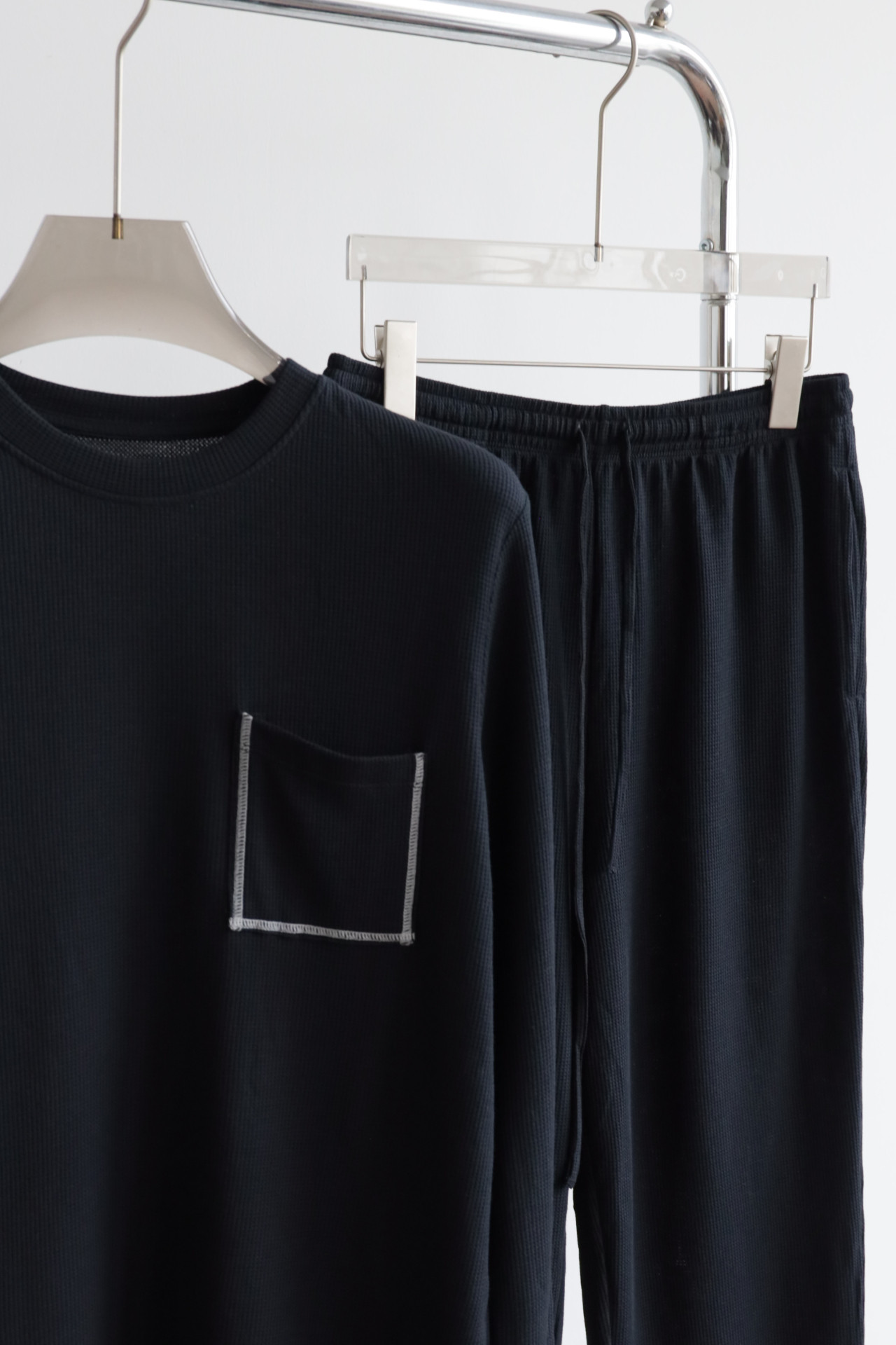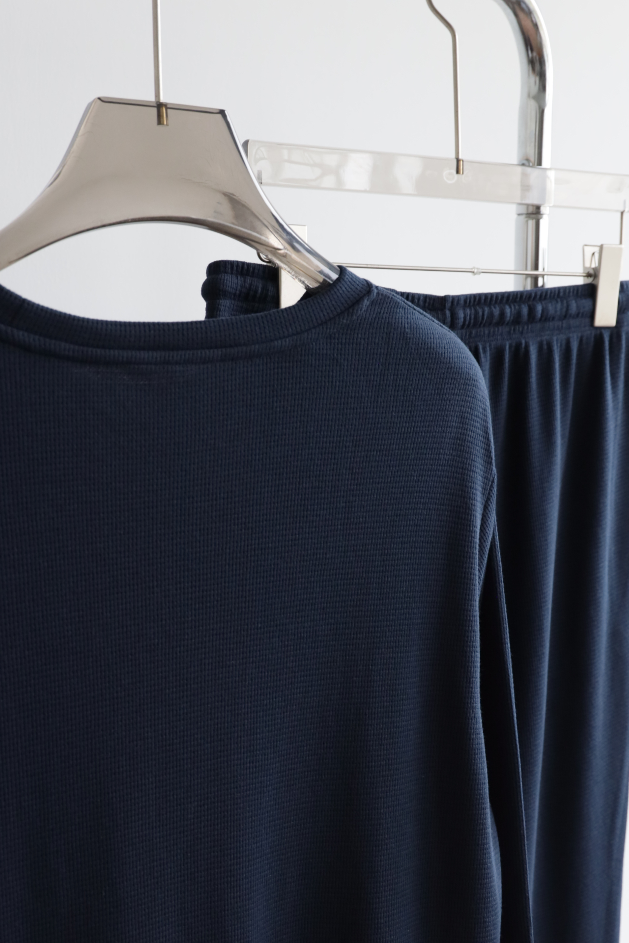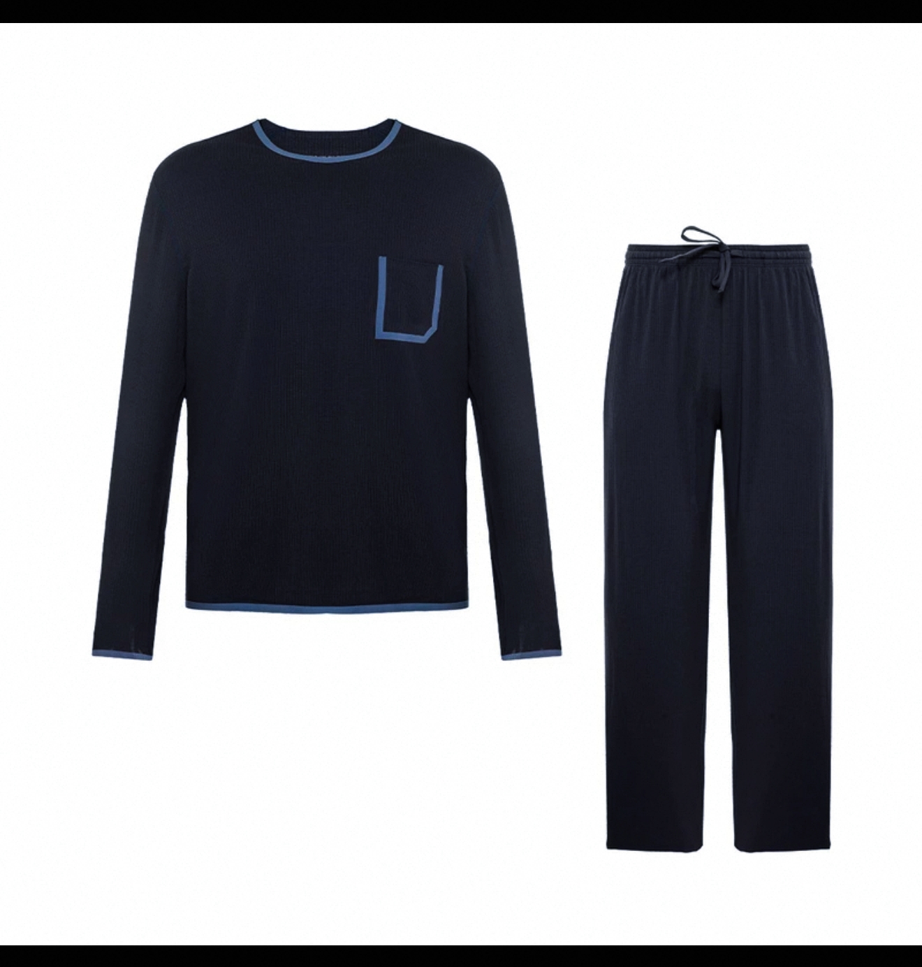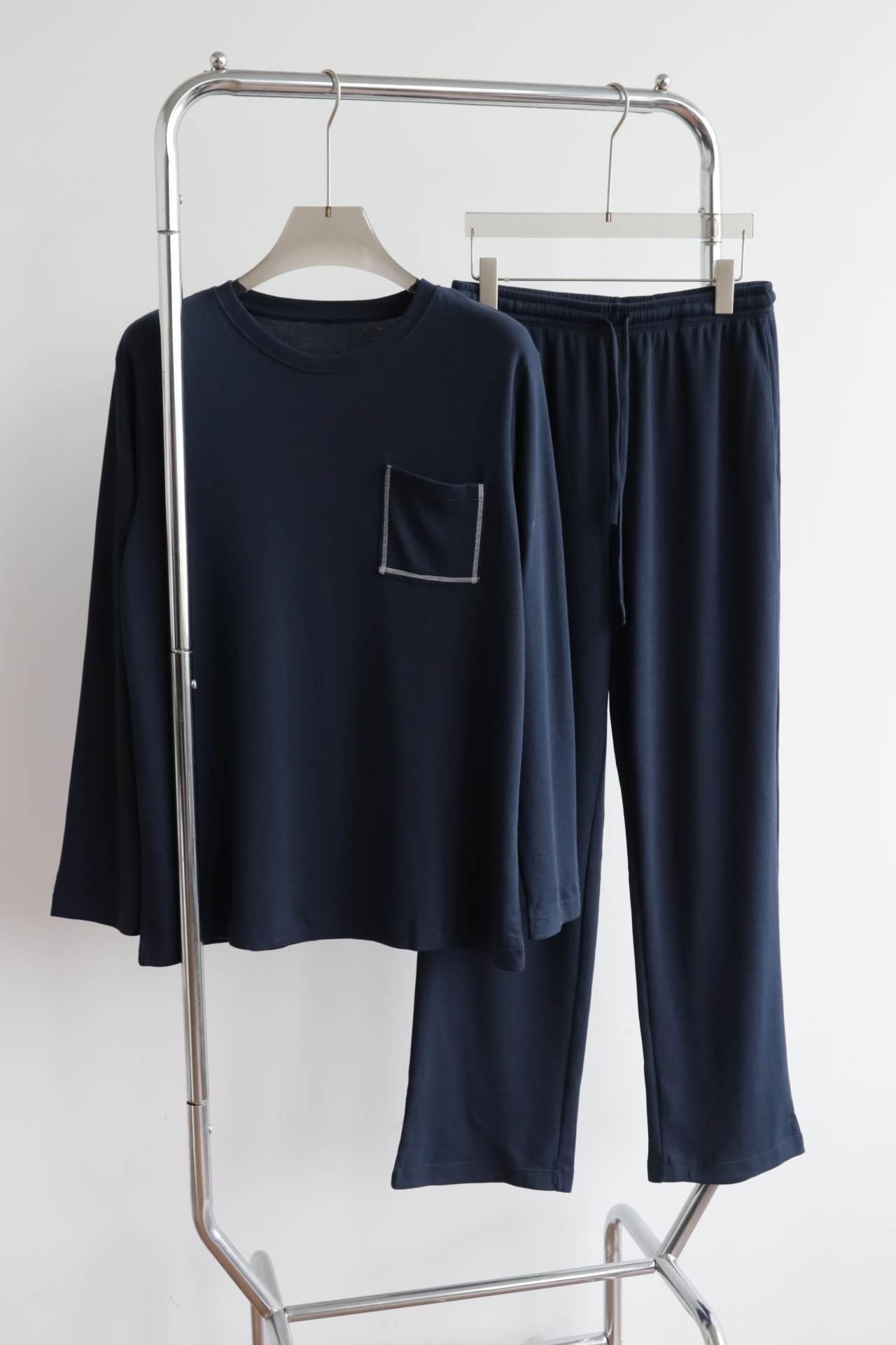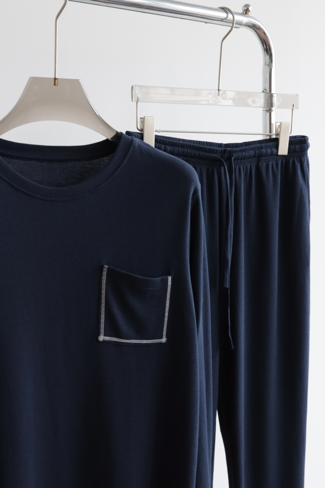 男款 华夫格 宽松睡衣套装 长袖+长裤
