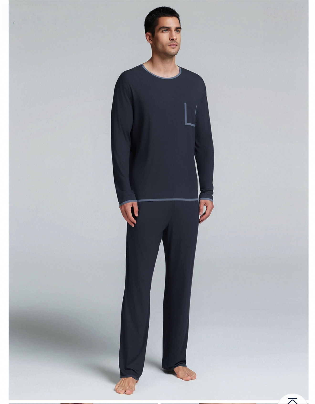 虽说是居家服,款式还挺板正,上衣当打底穿出门也不会很丑