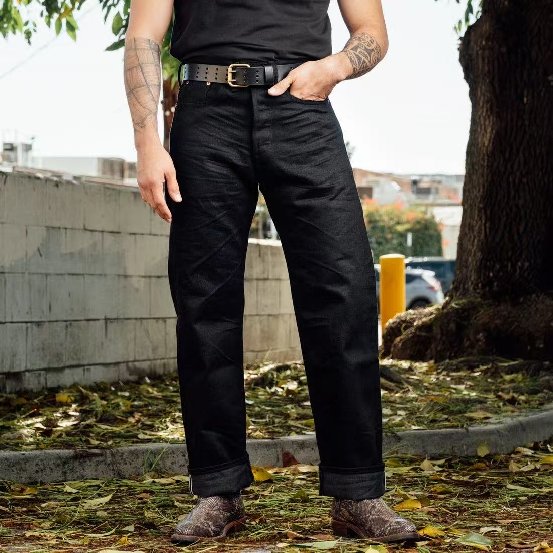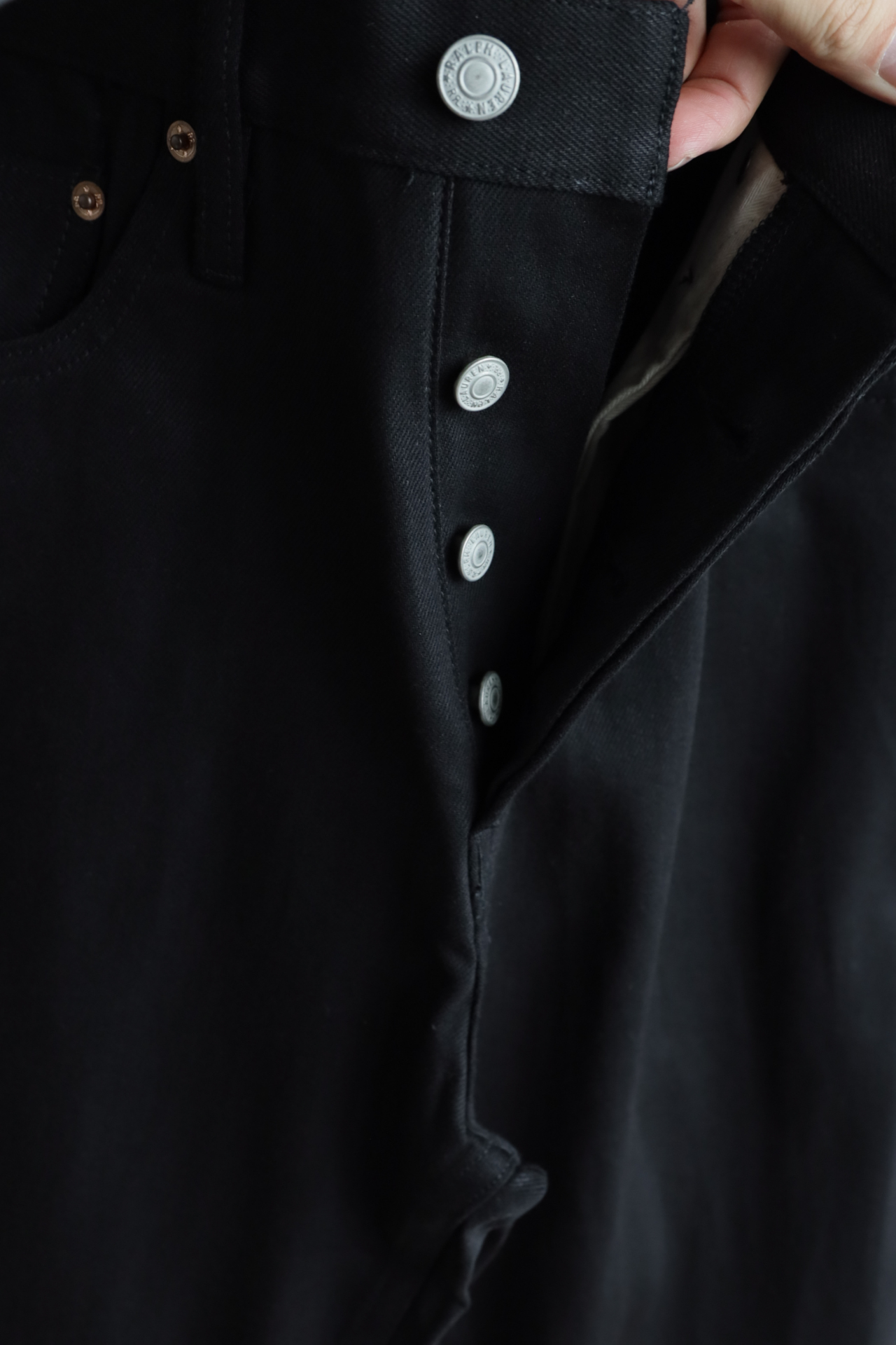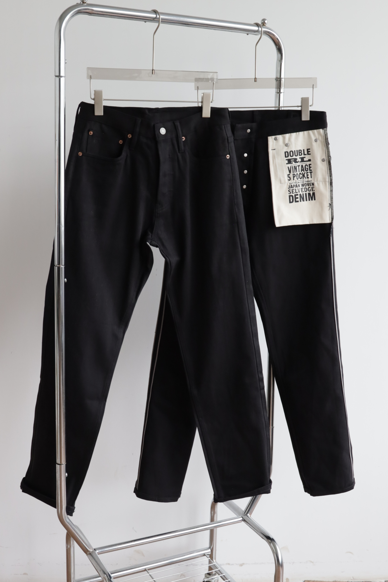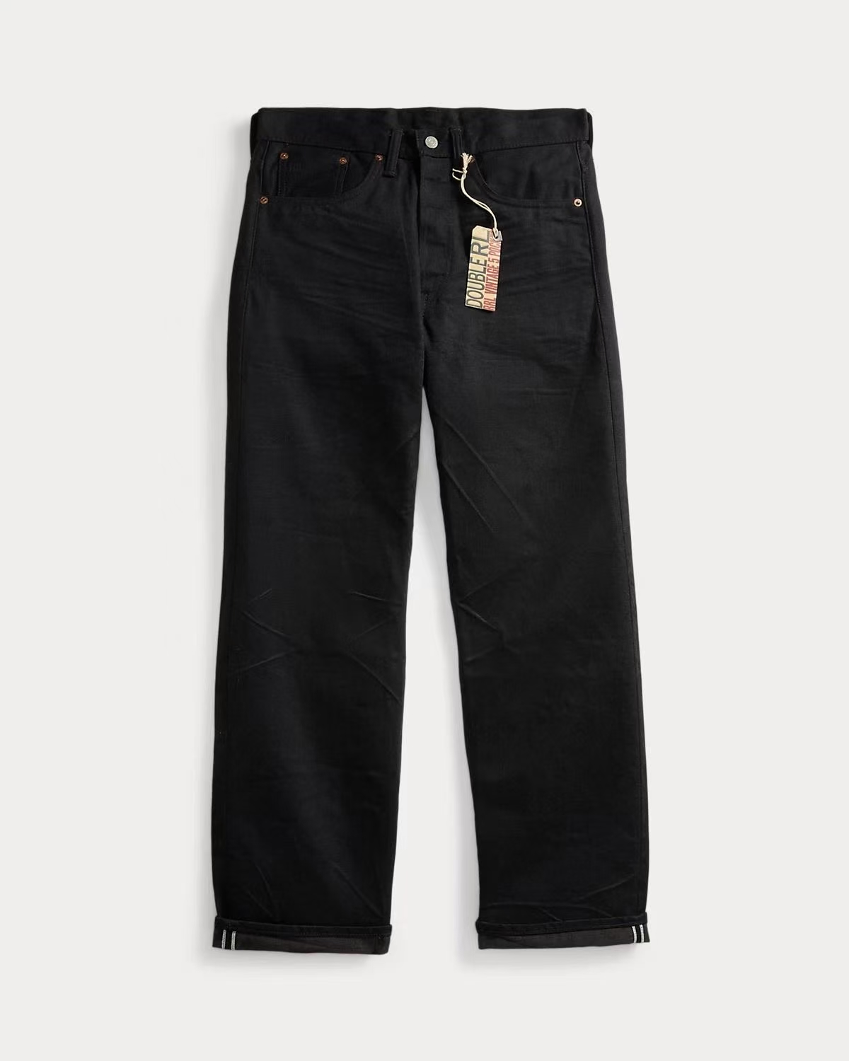 秋冬款 R.R.L 男士赤耳黑牛微宽松直筒牛仔裤
