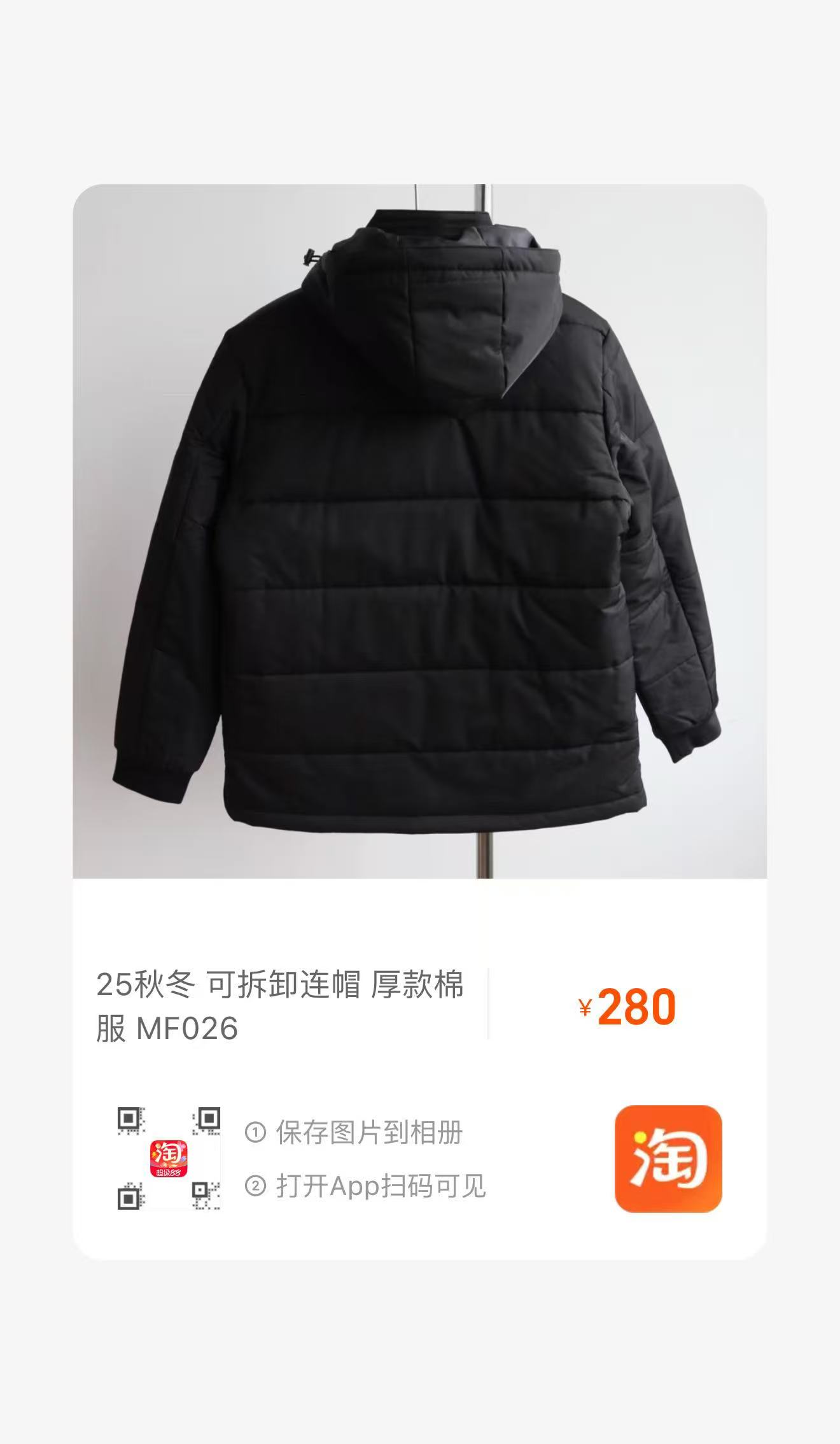 H.B 25秋冬 可拆卸连帽 厚款棉服
