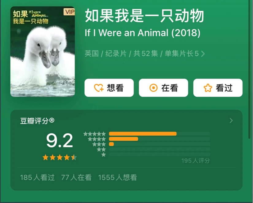 每一集都以“如果我是一只……”的童趣视角,带领孩子认识一种野生动物的出生、成长与习性。旁白是两位小朋友充满好奇的对话,语言简单亲切,极易引起共鸣。能鼓励孩子对动物和大自然产生深厚的兴趣。