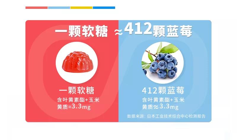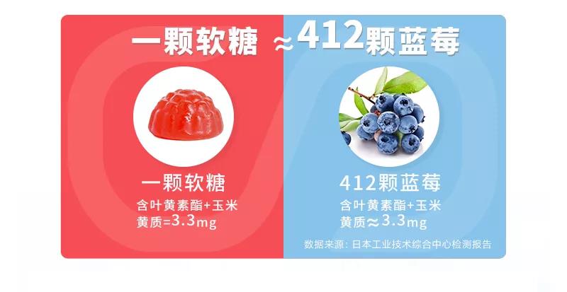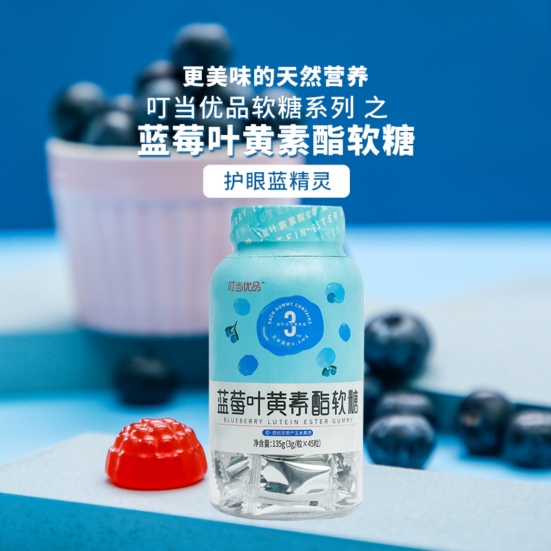 迫切需要补充人体缺乏的叶黄素,不如每天吃点——叮当优品 · 蓝莓叶黄素酯软糖,1粒=412颗蓝莓的营养。