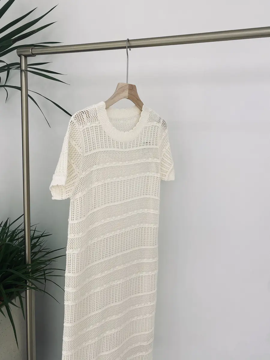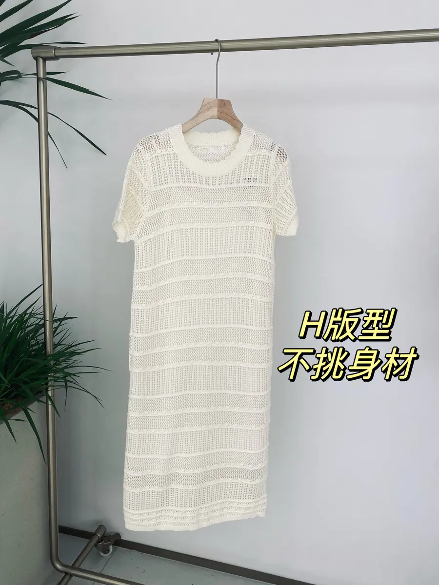 这条镂空针织连衣裙,版型上为基础的H直筒版型,任何身材基本都可以驾驭