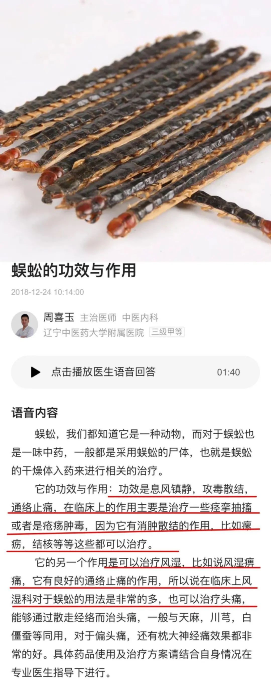 蜈蚣入药可以疏通经脉,攻毒散结,通络止痛。