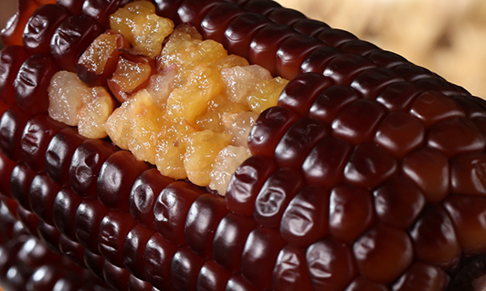阅农的黑玉米:饱满的籽粒富含花青素及各种人体必需的微量元素、植物蛋白质和各种氨基酸,营养含量明显高于其他谷类作物。