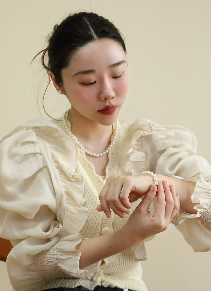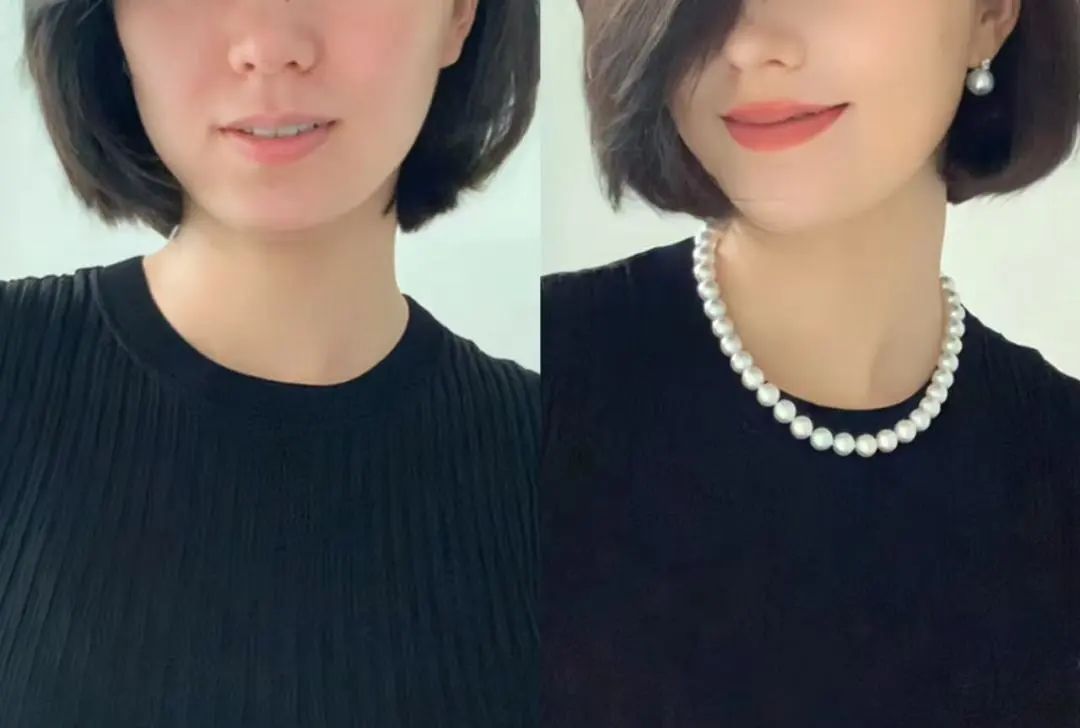 无论搭配大衣,春秋搭配衬衫、T恤,搭圆领、V领,搭时尚款、中式款服装,还是任何颜色的衣服这套珍珠让人显得更好看!