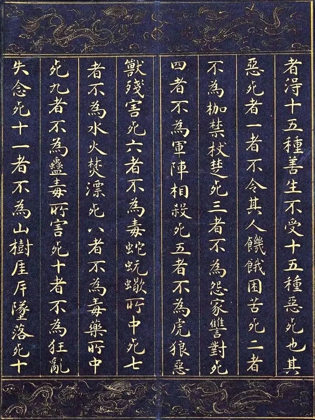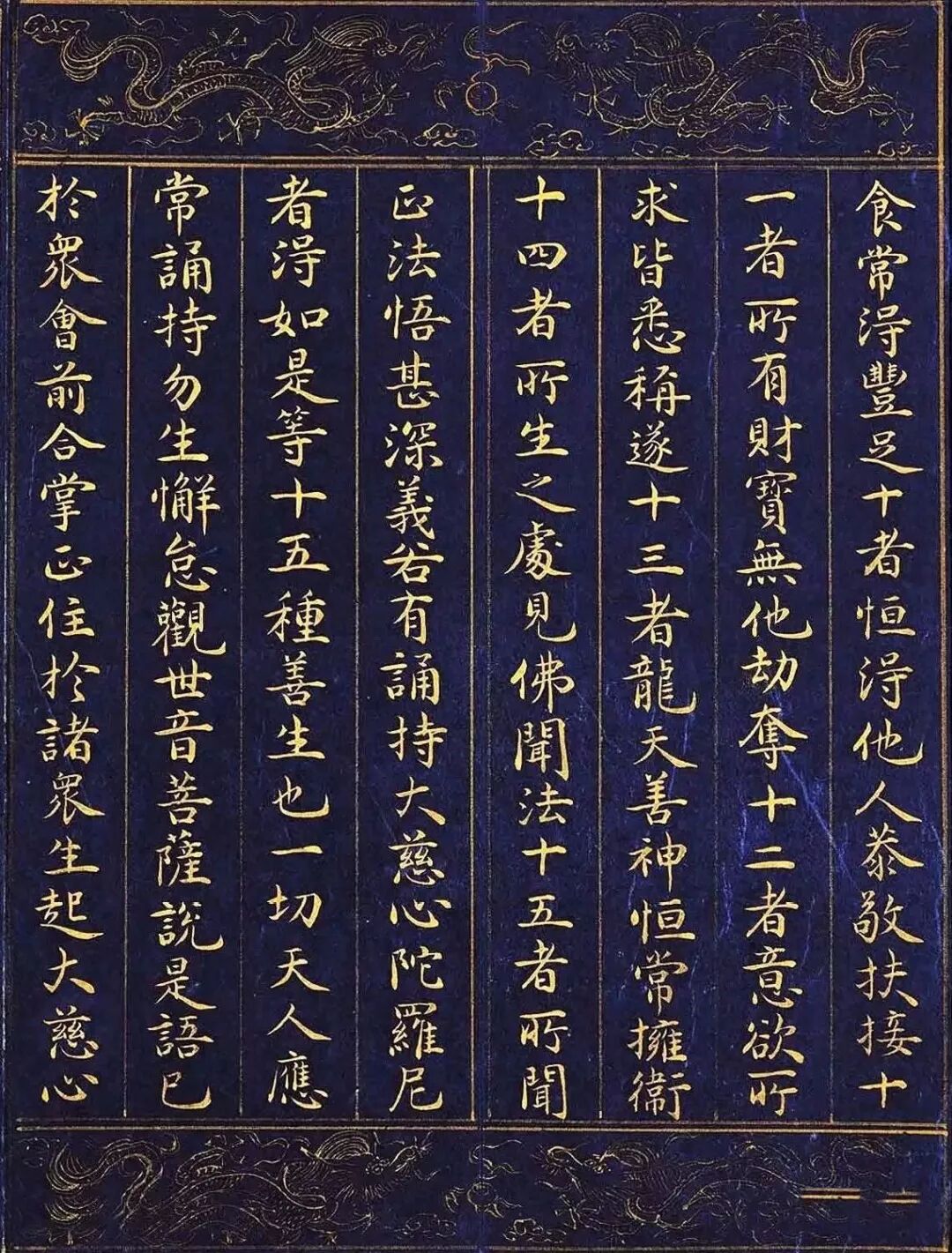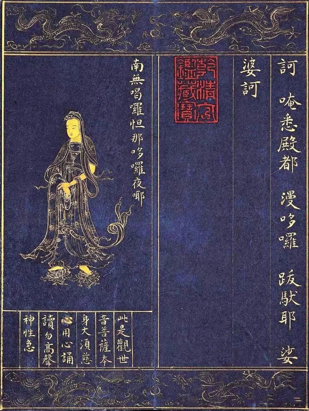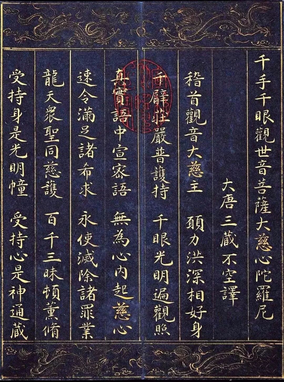 这是明人小楷极品《千手千眼观世音菩萨大慈心陀罗尼经》,此本为明代泥金写绘,经折装本,现藏于台湾故宫博物院。