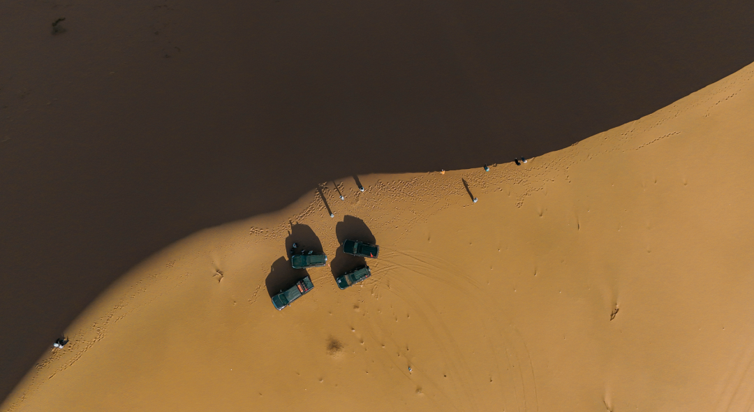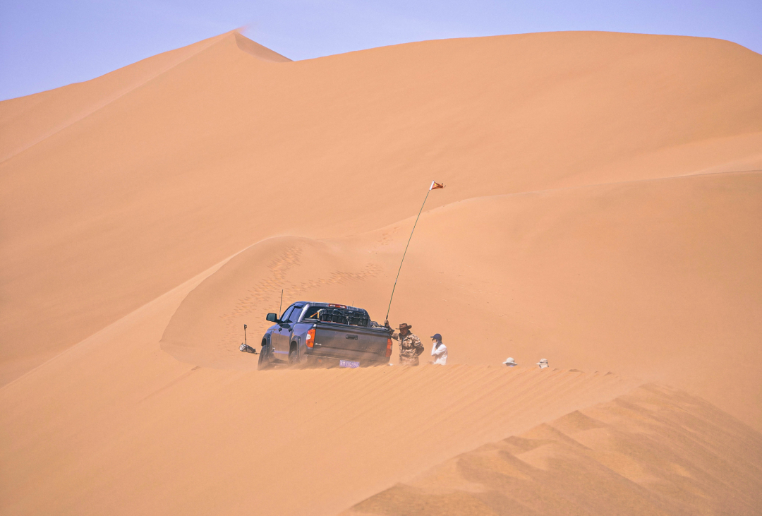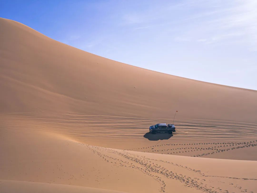 不停的翻越大大小小的沙丘,数不清有多少次冲坡,每一次都像在挑战地心引力,翻越沙丘向下俯冲甚至带有失重感,像坐海盗船,就算有安全带也要抓紧扶手,总之,我成功的晕车了,算是体验到殿堂级越野的厉害了!