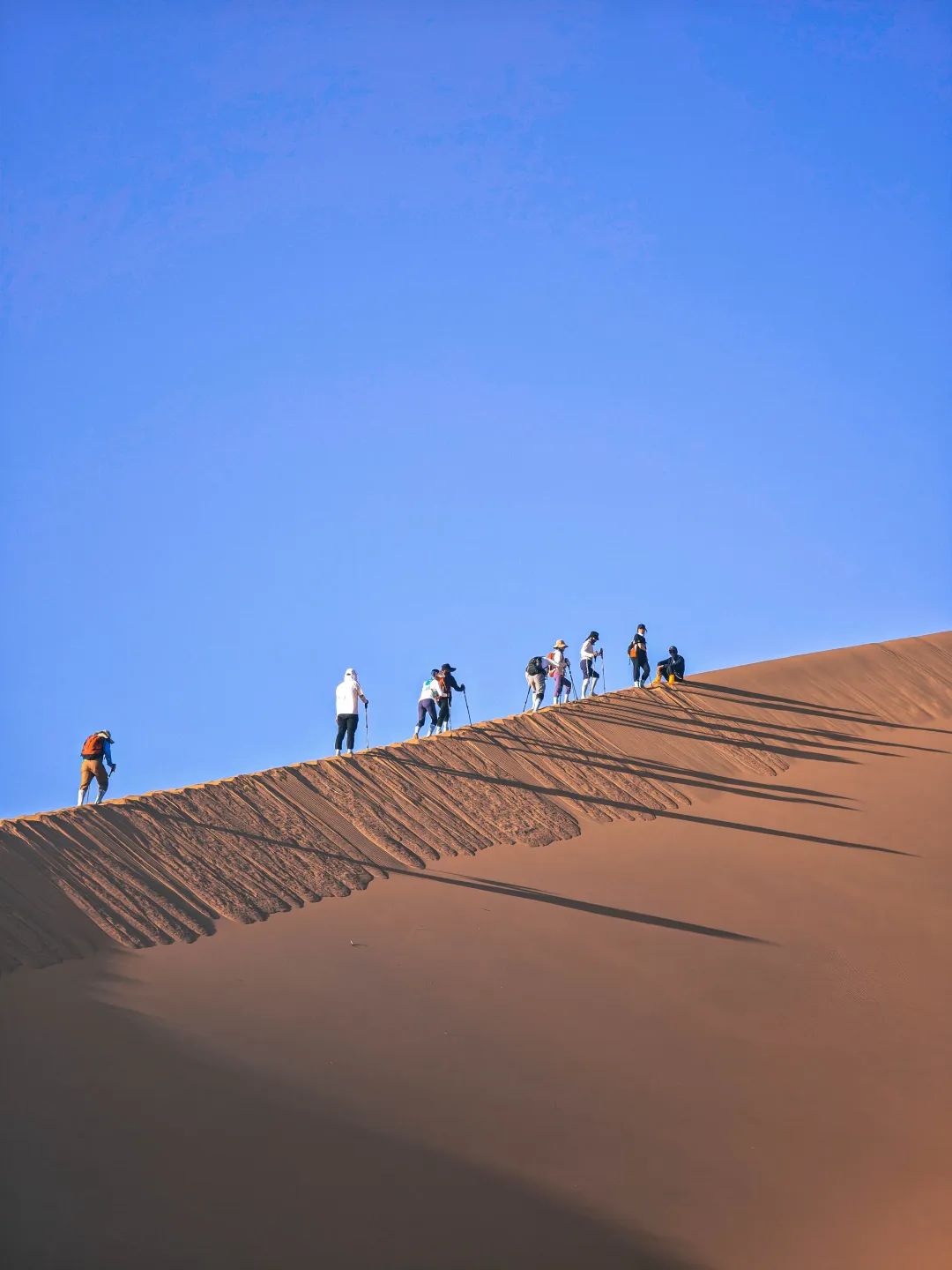 这里徒步是一场毅力的磨练,但强度又刚刚好,坚持一下下便可完成,它会再用一场日出和星空,慷慨地补偿我们所有汗水,脚印会被风沙吹散,但这些瞬间是永远鲜活呀。