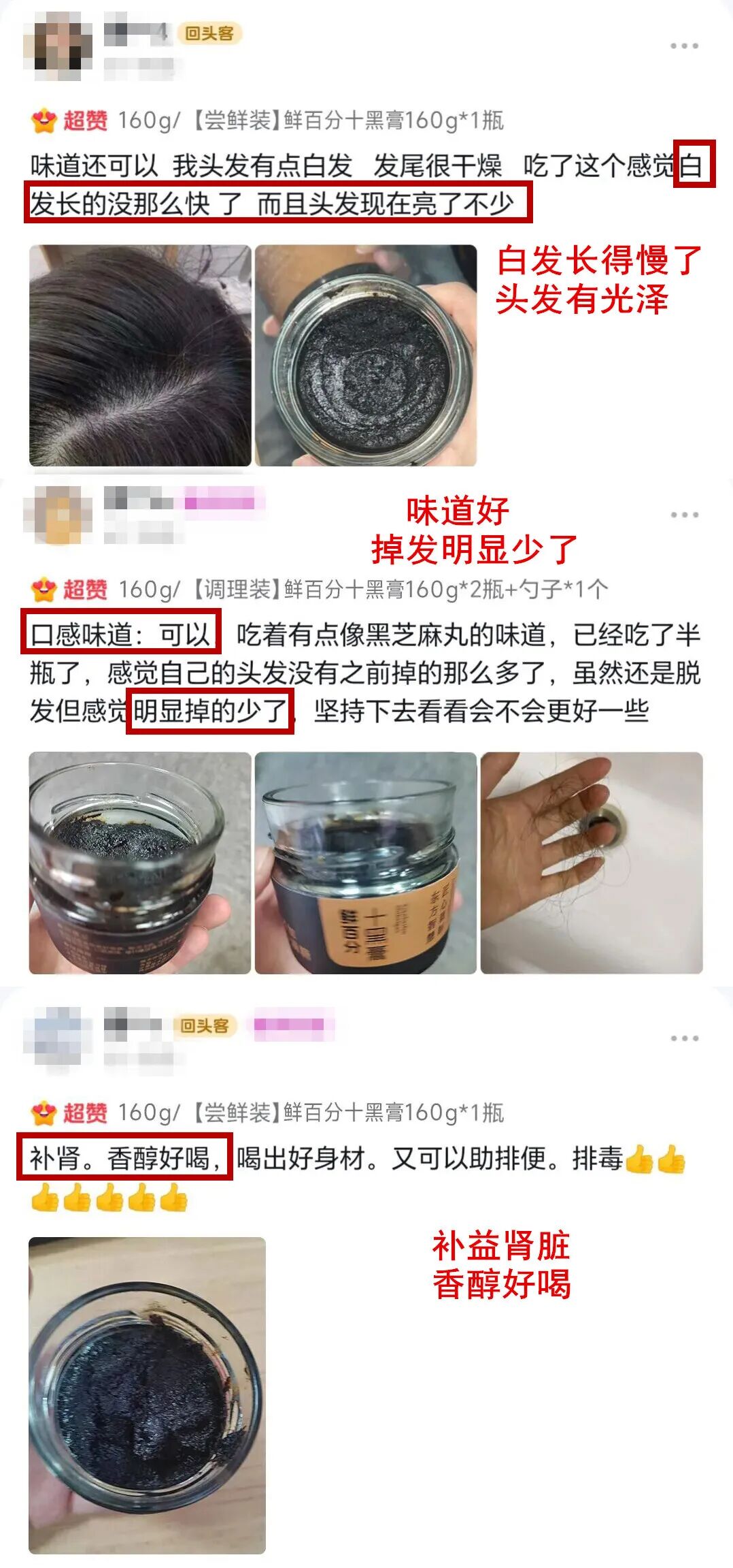 而这款十黑膏不惜成本,特别添加了灵芝、黄精2味珍贵草本,用于“堵漏”,把肾精牢牢地固护在身体里,给头发连续不断的滋养,从根上养出乌黑浓密的秀发~