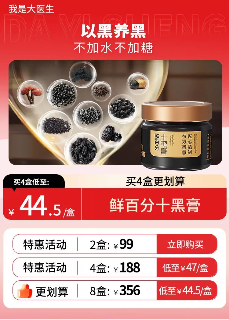 而且与普通的液体膏滋不同,这款十黑膏是固态的。这是因为所有原料都经过了高度浓缩,把大部分的水分都去掉了,只留下蕞核心的营养。