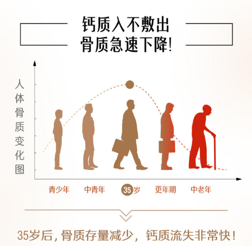 骨质疏松不是自然现象,是一种可以预防的疾病✨人一生骨峰值大约出现在35岁,年轻人需要尽早补钙❗提升骨峰值,尽可能延缓骨流失速度💨