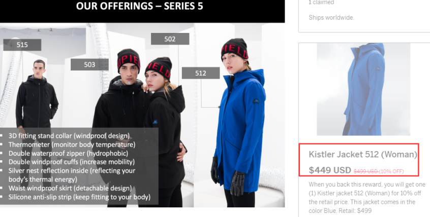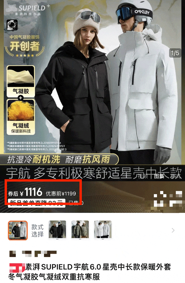 素湃品牌的气凝胶外套,在美国售价449美元,约3000元↓