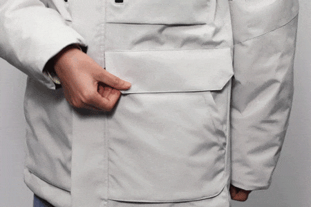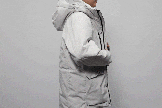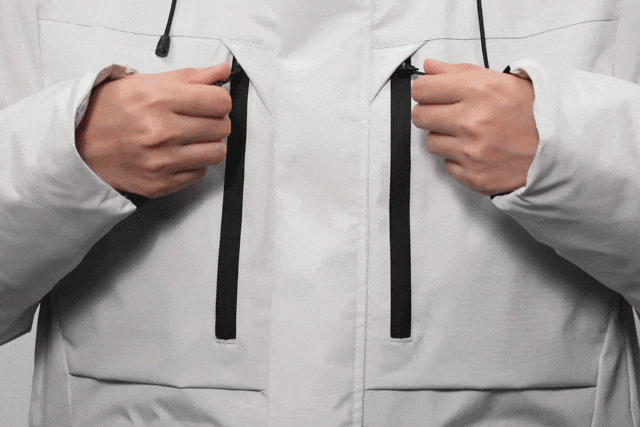 口袋内含隐形抽拉绳,一抽秒变收腰款抗寒服,给身体更贴身的保温