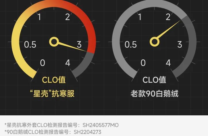 新版素湃星壳抗寒服clo3.31,老款90白鹅绒clo2.32,保温性能提升了42%