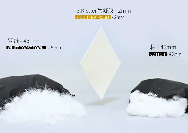 相同保温性下,气凝胶服厚度仅90白鹅绒服1/3,冬天穿着不臃肿,还炒保暖
