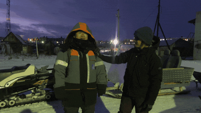 看看他与同伴的衣服厚度差距,就知道素湃气凝胶抗寒服真的既轻薄又抗寒保暖!