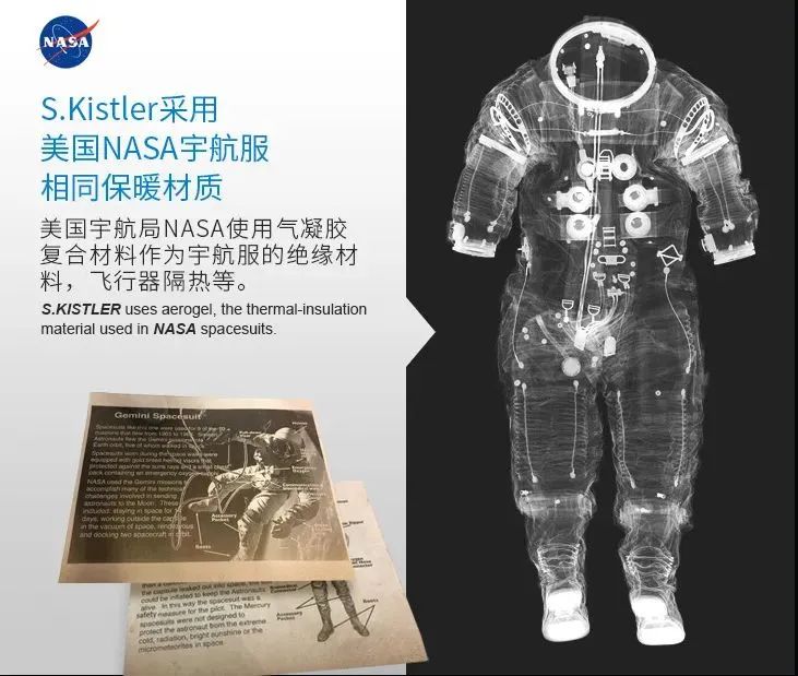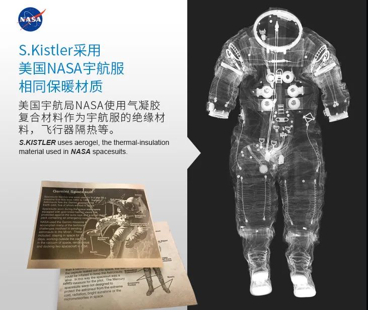 NASA就曾用气凝胶制备宇航员飞行隔热内里,帮助宇航员解决1400℃高温到-130℃超低温的多次往返难题。