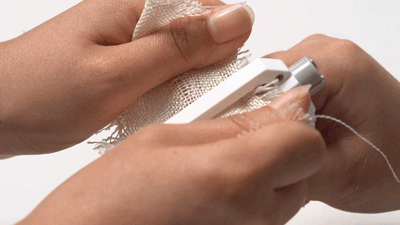 这时候,拿出它,拔下刀片保护壳,刀片对准安全带用力切割。不需要多大力气,秒割安全带。用布试一下,嗖一下,快如闪电。
