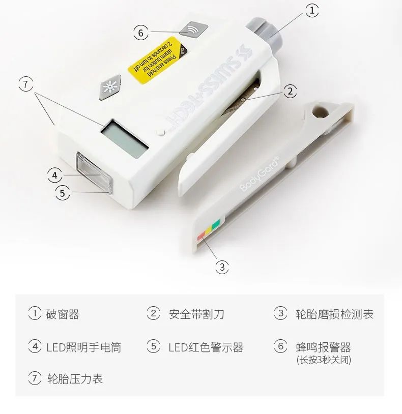 2、多功能合一体,破窗、割安全带、照明......满足紧急时刻必要需求。