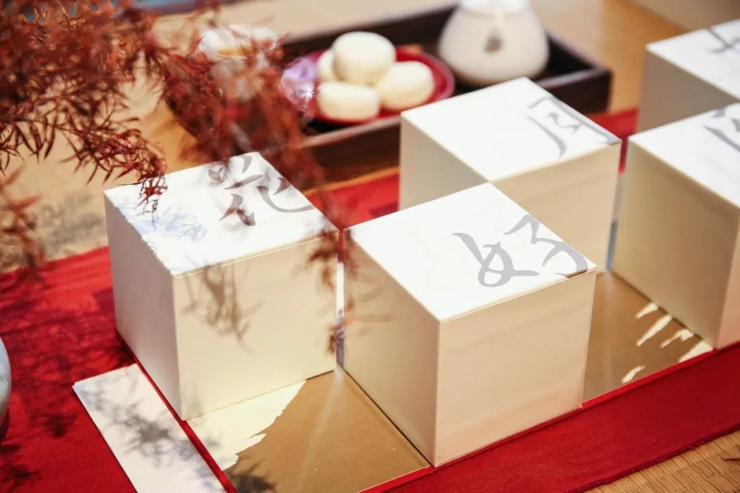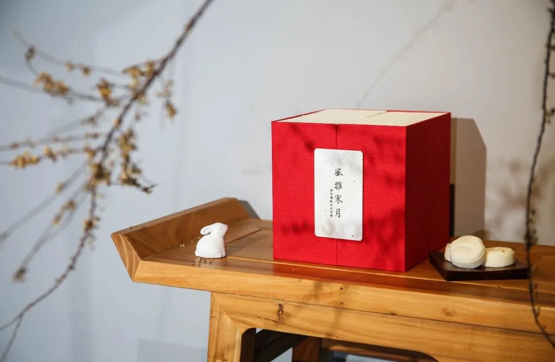 礼盒别出心裁,分为三款,风雅宋月礼盒由八个上下交错的盒子组成,展开时错落有致,聚拢时合为一体,正有阖家欢聚之意。