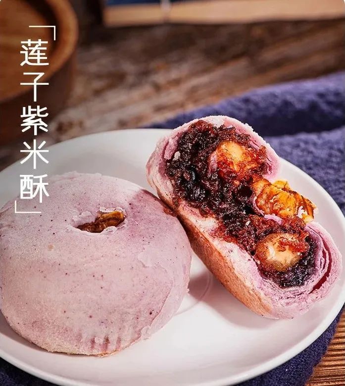 莲子紫米酥👉🏻莲子蓉细腻清甜,紫米馅绵密软糯,带着谷物天然的芬芳。口感微沙,甜而不腻。
