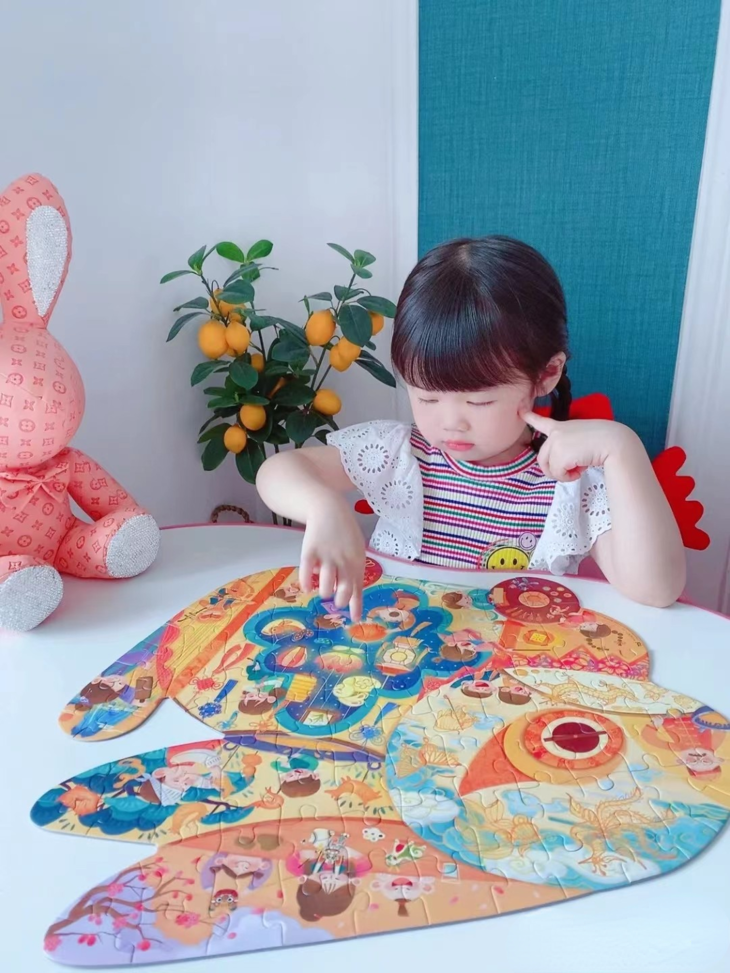 这款拼图是一款艺术拼图融合了中国风和中国传统节日在里面,寓教于乐,能够帮助孩子认识卡片上的文化知识。