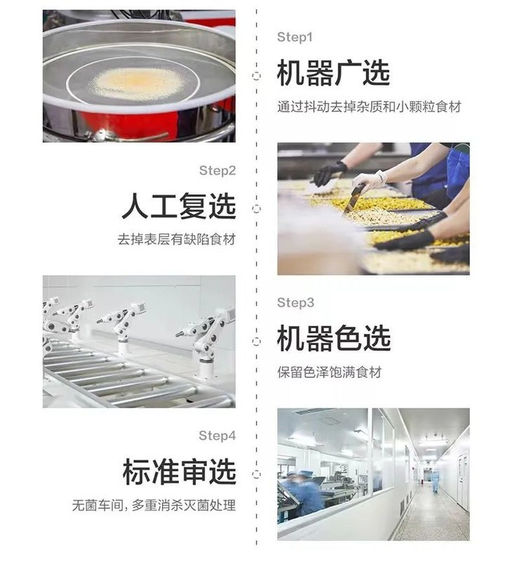 采用135度低温烘焙,去除掉食材本身的寒湿,保留食材本身的营养成分不流失。