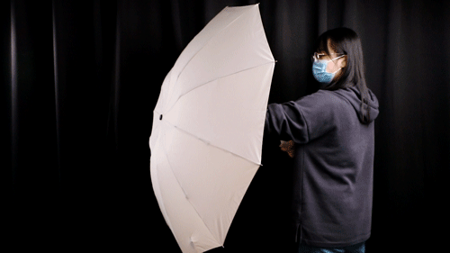 左都反向伞拿到手后,我们先用喷壶模拟了雨滴进行初级测试。