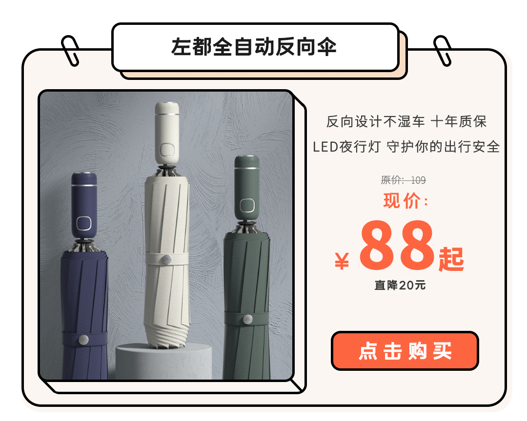 但左都反向伞,就是要让你放心用上10年!