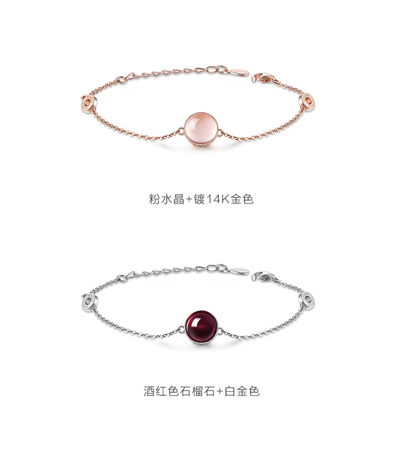 最是那腕间一抹轻灵光泽,令人无法抗拒!KADER星球系列,简单的链条设计,梦幻朦胧的粉水晶和石榴石,瞬间彰显高级感!精致俏丽,温柔空灵,是小仙女必备单没错啦!