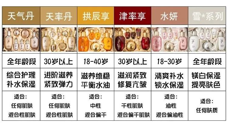 而天气丹是Whoo后旗下的高阶系列,亦是市面上为数不多的,全年龄段、所有肤质(包括敏感肌)都能用的一套护肤品。
