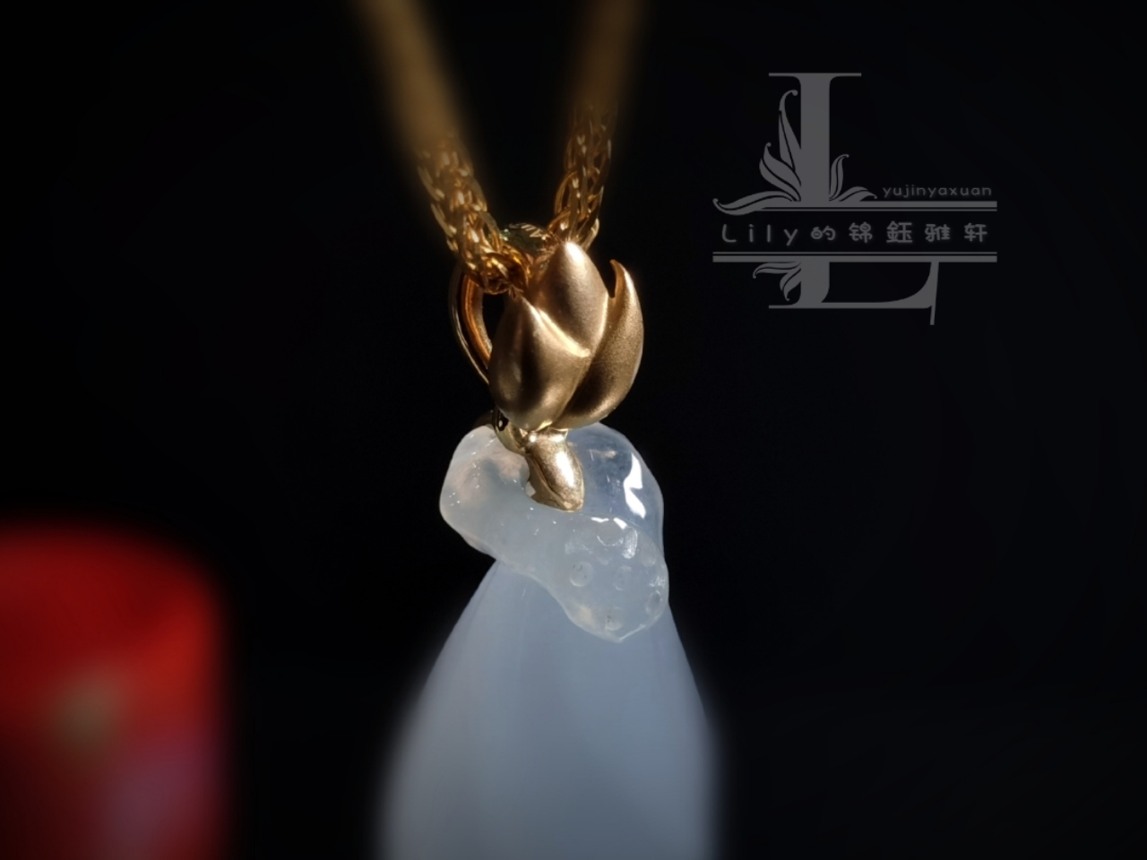 说到藕,就会让人联想起哪香远益清,亭亭净植的荷花,这件项坠就用黄金做了含苞待放的荷花形状的扣头,取名“因荷得藕”。
