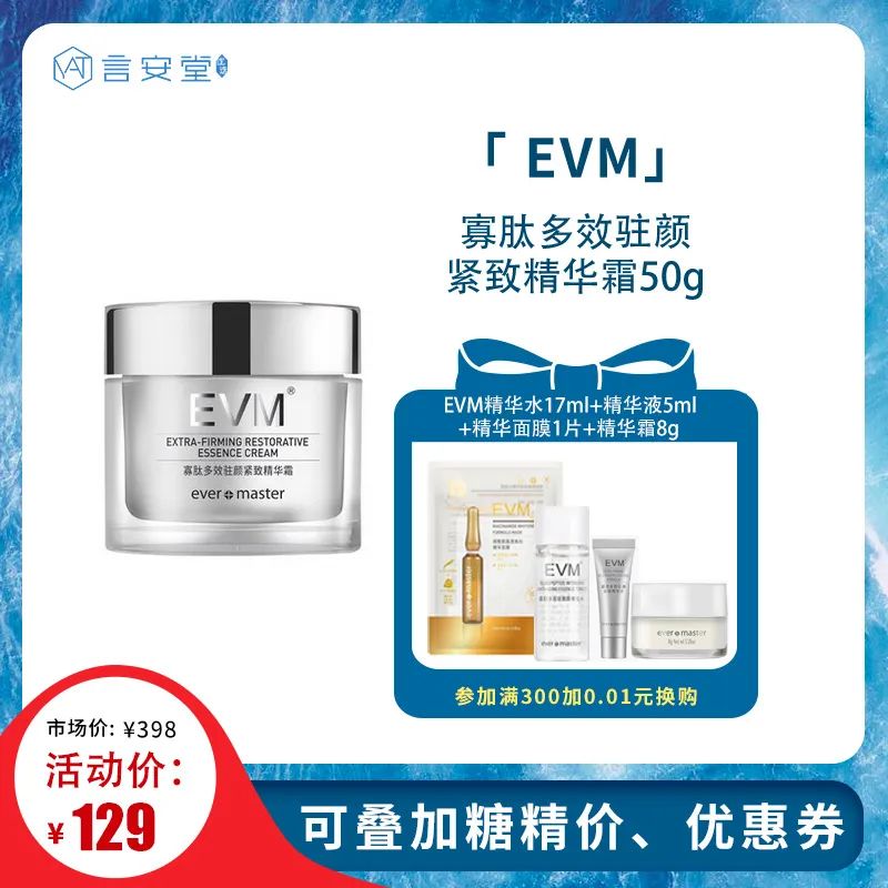 EVM寡肽多效驻颜紧致精华霜50g 赠EVM精华水17ml+精华液5ml++精华面膜1片+精华霜8g