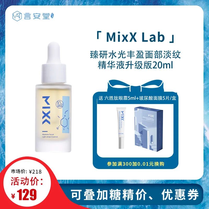 价格嘛~129~送你送 MIXX LAB六胜肽修护淡纹眼霜 5g+Mixx Lab玻色因玻尿酸水光丰盈面膜 5片装(是不是香香滴