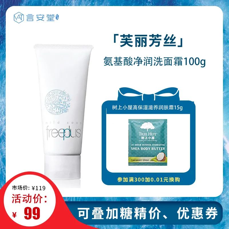 经典氨基酸洁面 芙丽芳丝 净润洗面霜100g 送 树上小屋高保湿牛油果滋养润肤霜15g