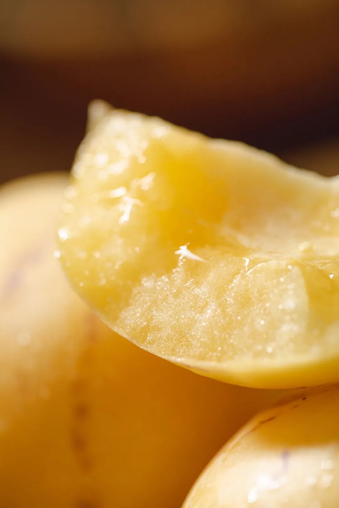 真正好吃的人参果,自带一种蜜瓜冰淇淋的味道,一口咬下去,水润、甘冽。