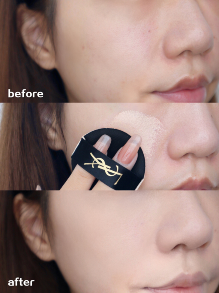 以精华水包裹微米级遮瑕粉粉底,水润度足够,上脸很好拍开,