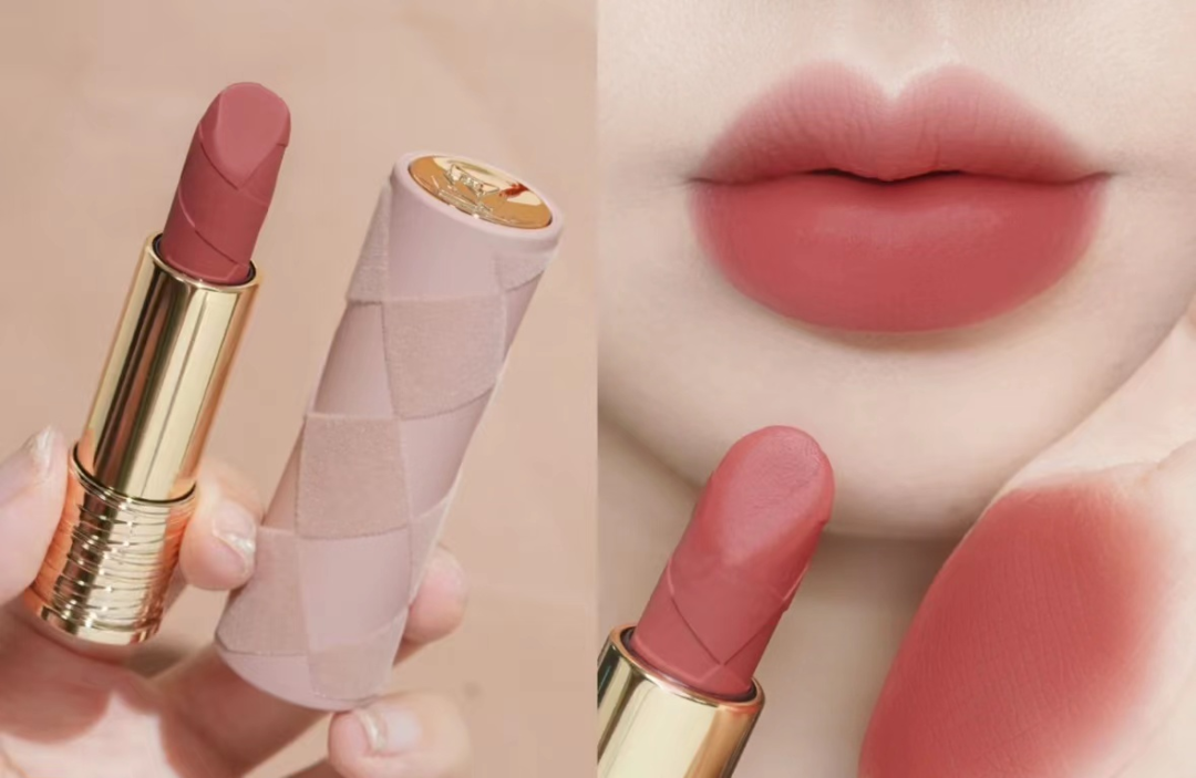 就显得温柔很多,低饱和的裸杏粉,日常用起来没有什么攻击性。