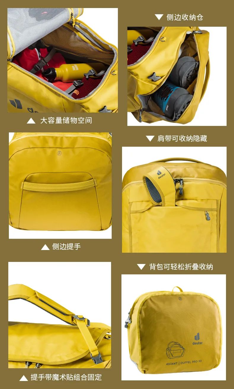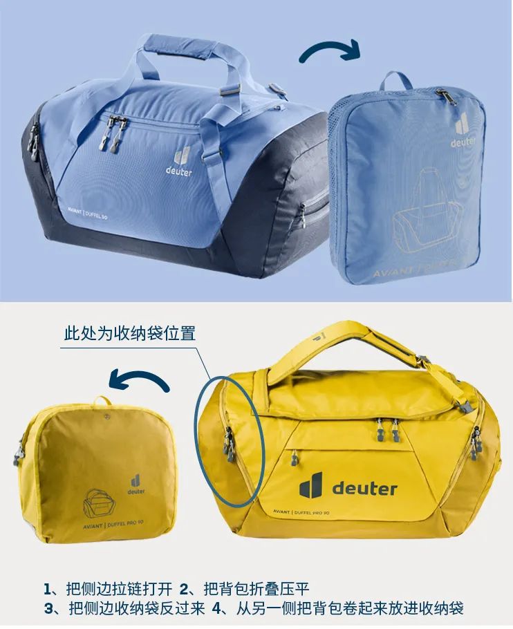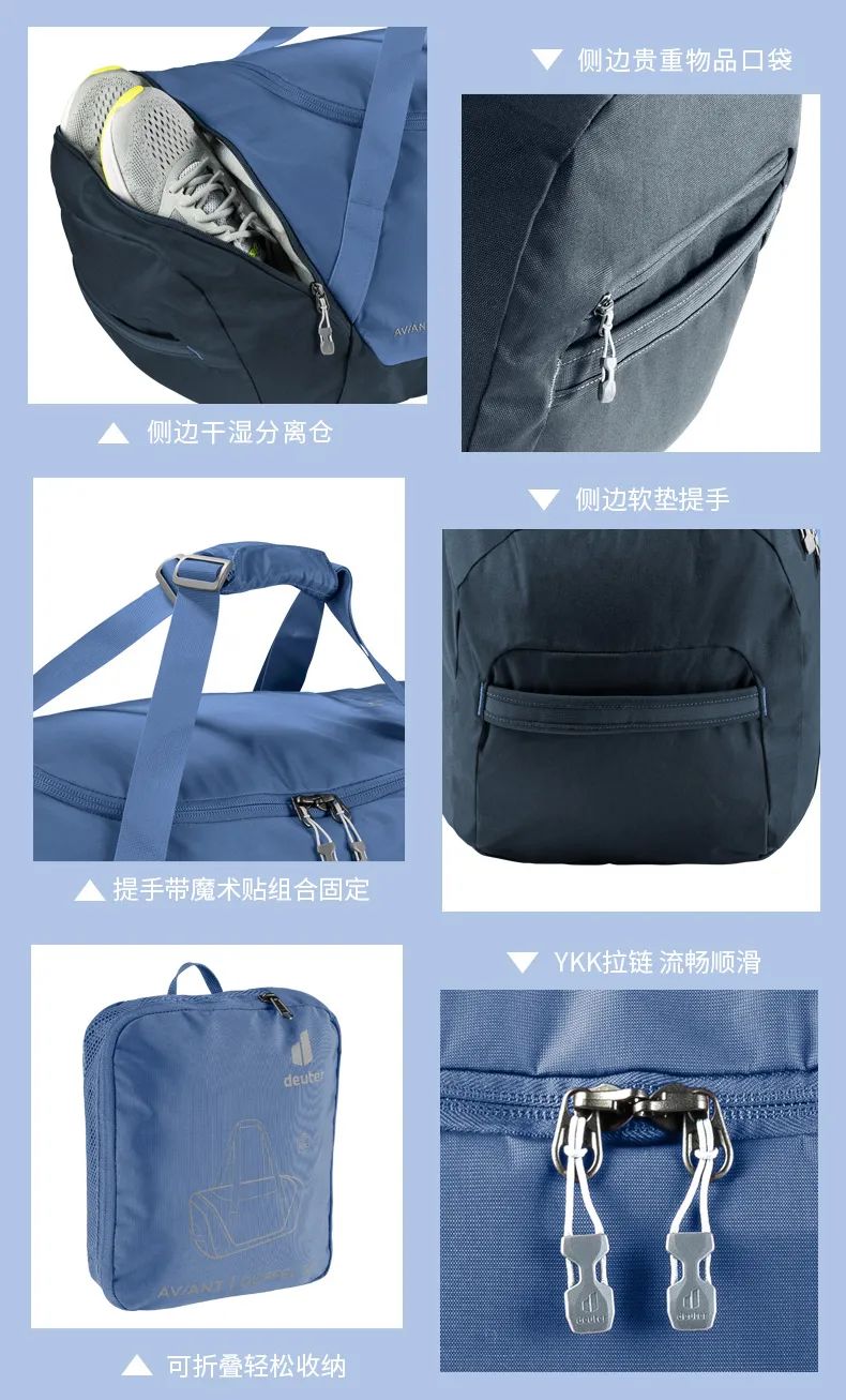 多特大福Duffel系列所有型号都具有大容量主仓、主隔仓采用大开口拉链设计,侧边一侧为干湿分离仓、一侧为物品收纳仓。