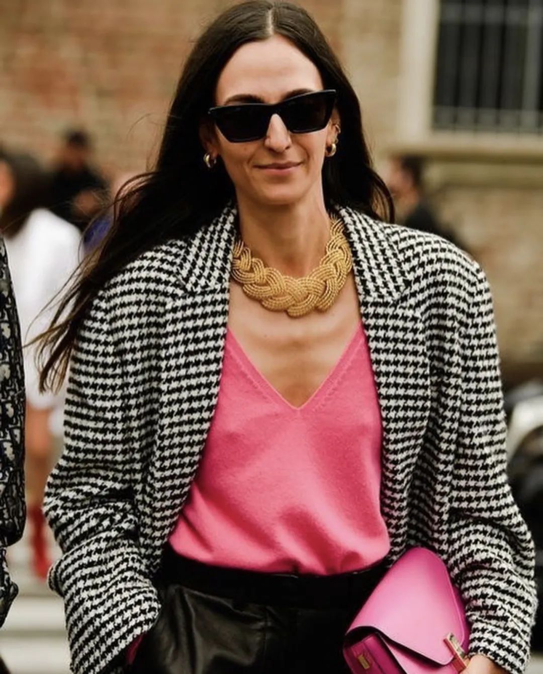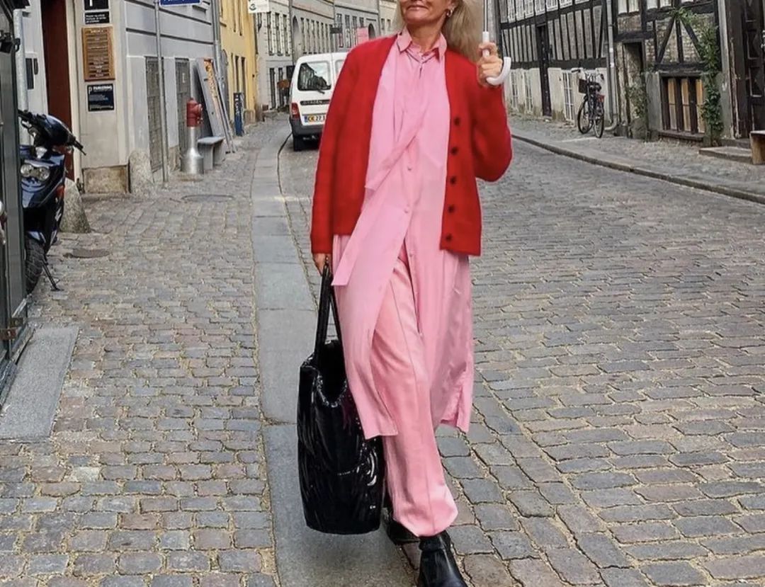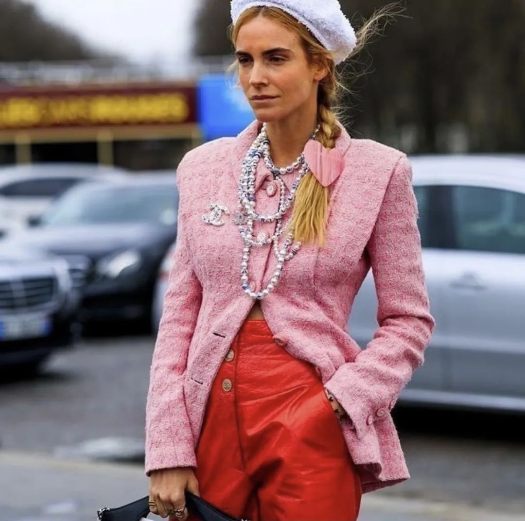 红粉配搭,弱化气场,增加了少女感,是个非常有趣的组合。