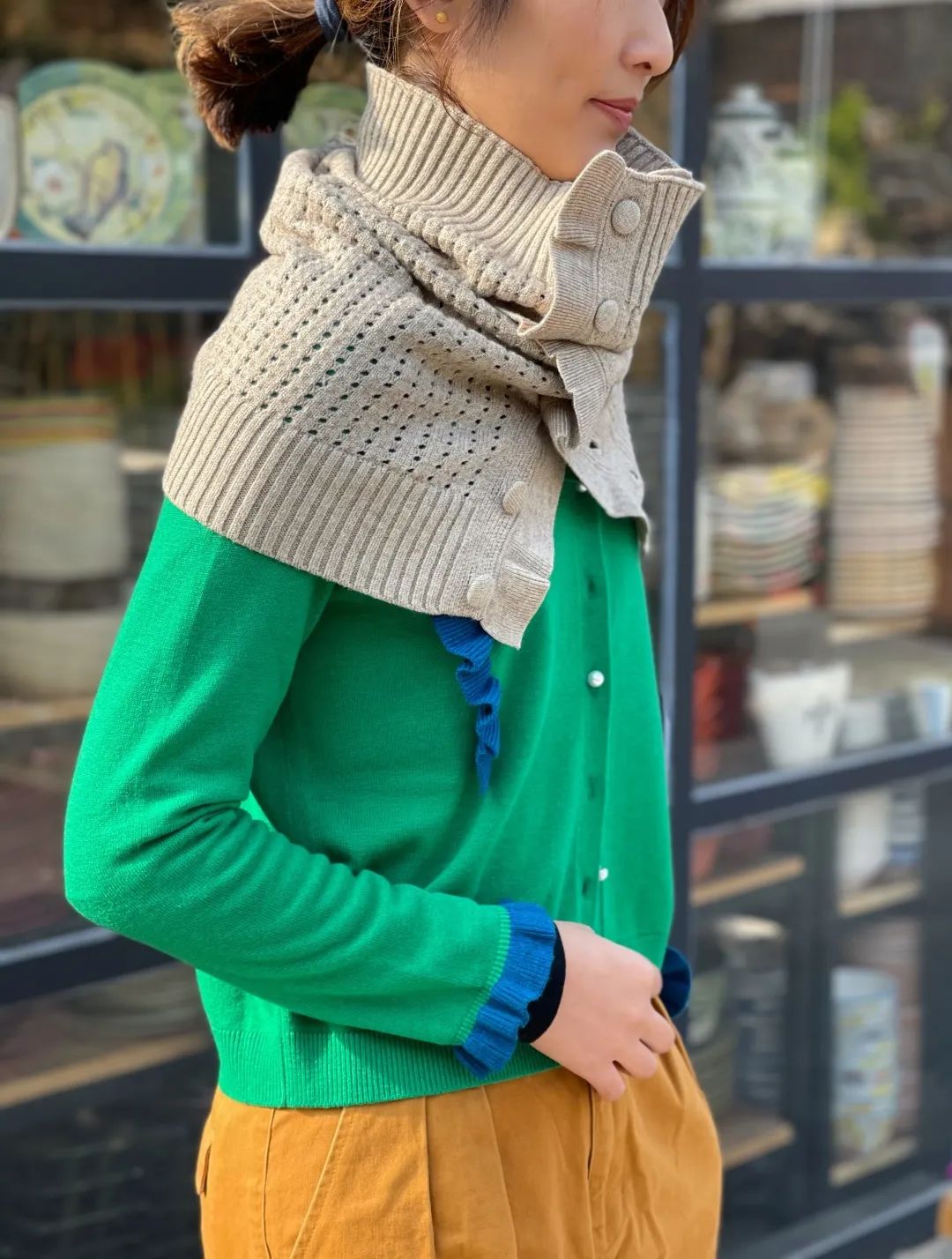 绿色单品其实很显白,而且比你想象中好搭配许多,搭配姜黄色也一样有节日气息。