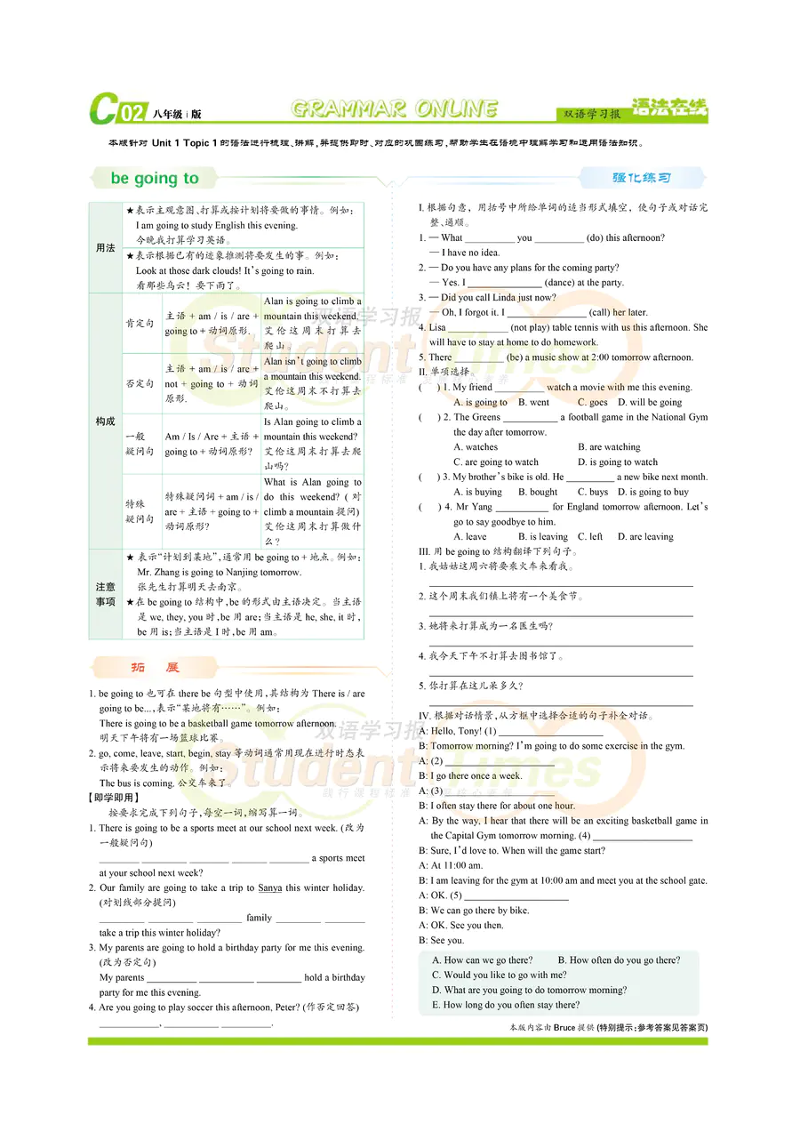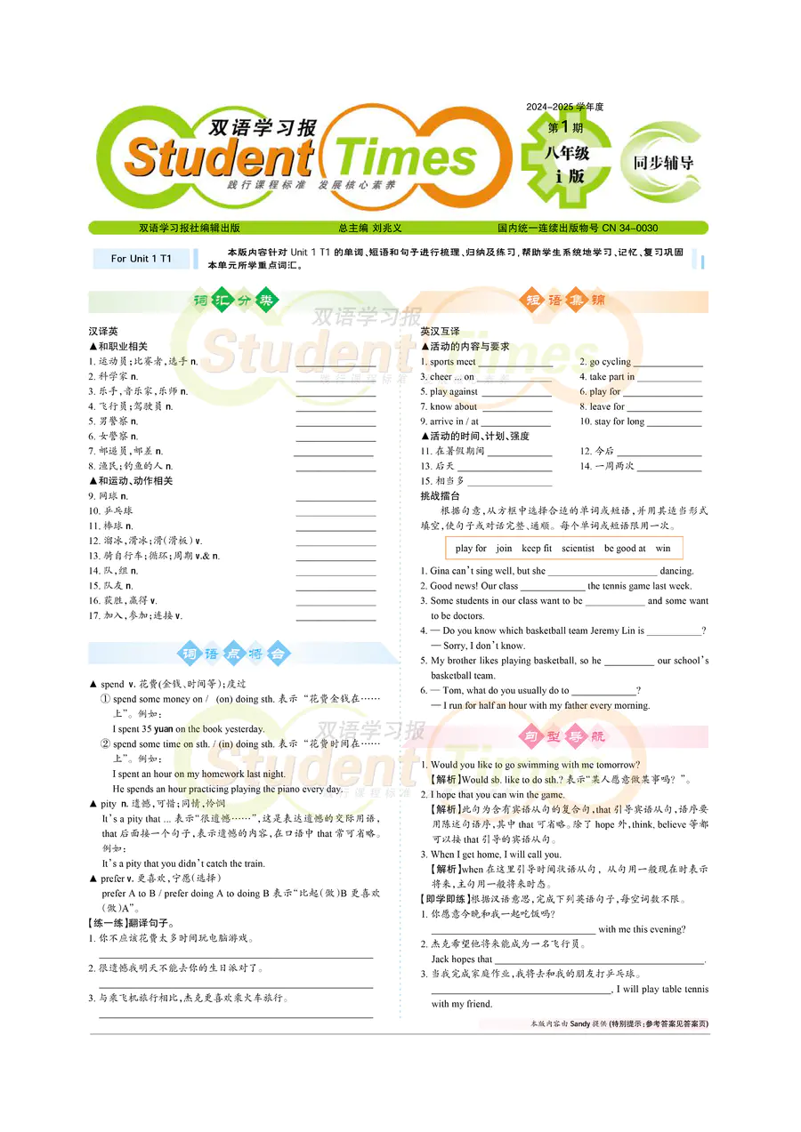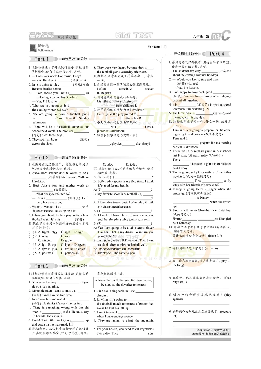 初中英语样报 八年级 i版同步辅导 C刊