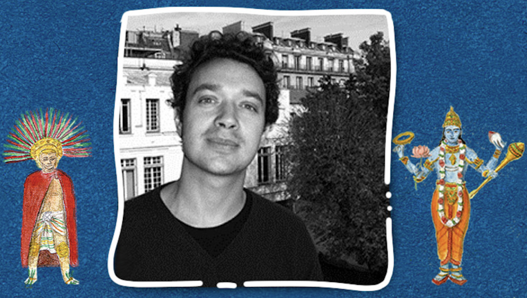一头巨大的水牛用犄角顶着大地,并站在一颗巨蛋的顶端,下面是一条巨大的鱼。