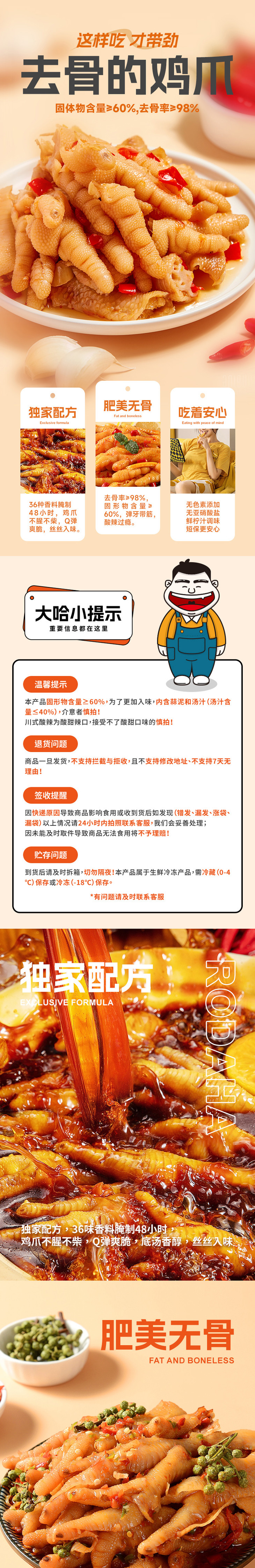 选用A级以上大鸡爪,人工剔骨完整的保留了鸡爪的肉和筋,QQ弹弹太好吃了