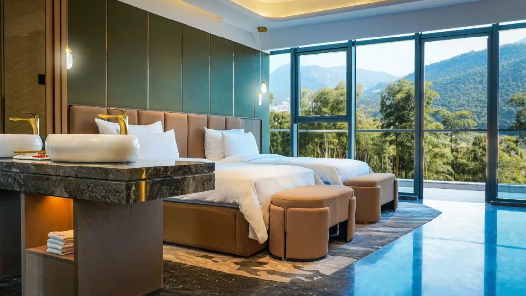 酒店紧邻景区度假村索道站,360°竹海山景尽收眼底。每间都享有超大空间,冰箱、料理台等一应俱全,是性价比超高的度假宝藏地,还有管家服务和专车接驳,让您体验到真正的宾至如归。