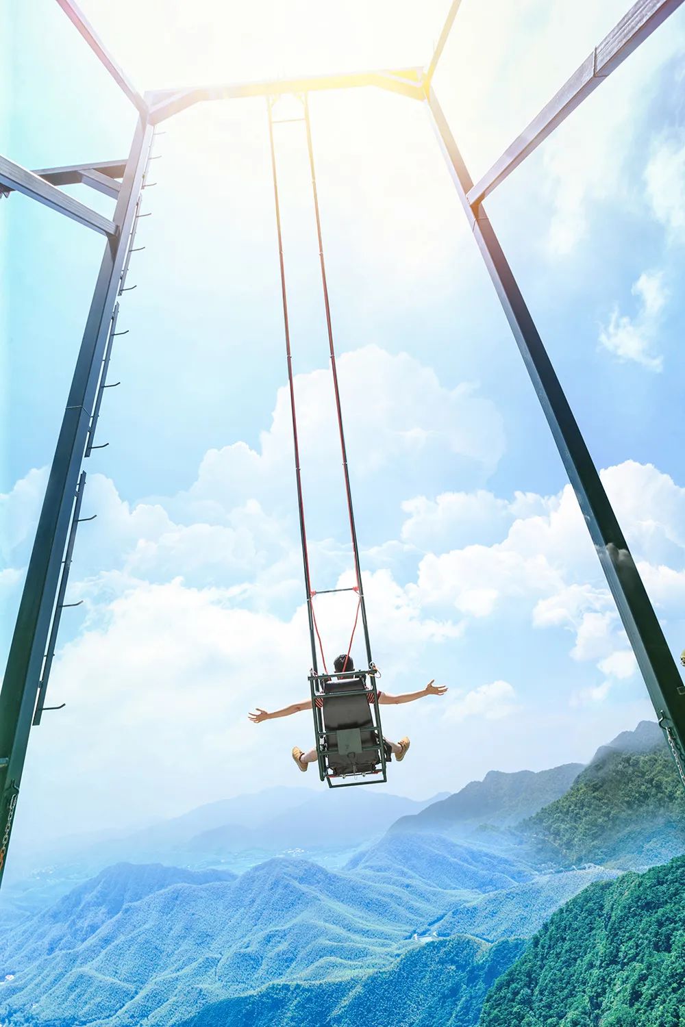 魔鬼秋千设置在天空之阶处,以超长摆臂,在海拔1168米震撼登场,配合呼啸山风与云端视野,肆无忌惮的尖叫吧!