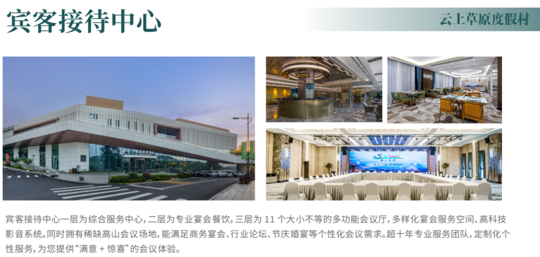 云上草原宾客接待中心,坐落于云上草原度假村中心位置,是云上草原酒店配备的综合服务中心,周围竹林环绕,尽享野奢、隐逸氛围,具备住宿接待、餐饮、会务、休闲等功能。